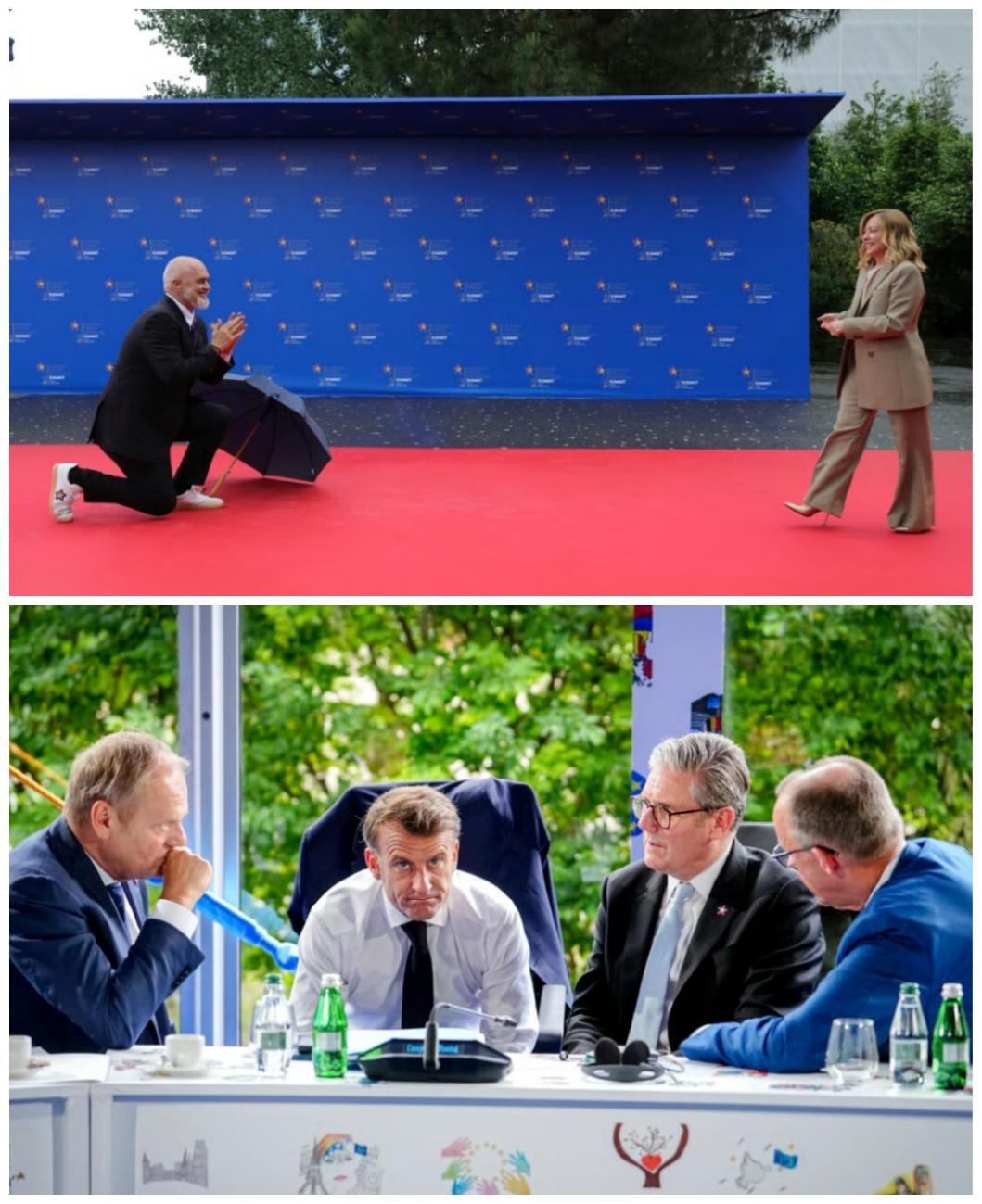 In un’epoca in cui l’Europa cerca con fatica di riaprire i canali del dialogo e costruire un percorso verso la pace, l’Italia sceglie l’autoisolamento e l’ambiguità. Le immagini parlano chiaro: da una parte Giorgia Meloni che riceve, sorridente, l’omaggio plateale del premier albanese Edi Rama, inginocchiato sul red carpet come in una scena da commedia di corte. Dall’altra, i grandi leader europei – Emmanuel Macron, il britannico Keir Starmer, il cancelliere tedesco Friedrich Merz, il premier polacco Donald Tusk– riuniti attorno a un tavolo per discutere la possibilità concreta di un processo di pace in Ucraina. Un incontro che potrebbe rappresentare un punto di svolta. Ma a quel tavolo, l’Italia non c’è.